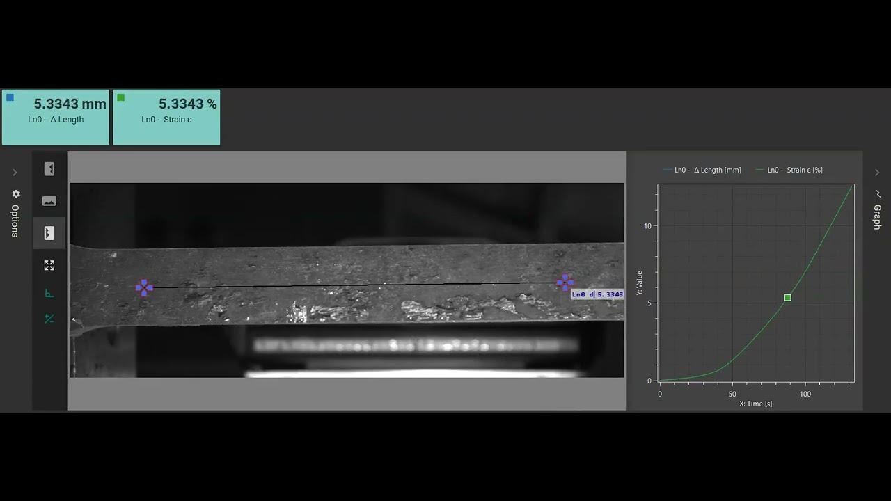 X-Sight ALPHA影像延伸計採用最先進的數位影像相關技術(DIC),提供非接觸式量測,以確保樣品的完整性,可即時提供高精度與高準確度的應變量測。其DIC 軟體具備模組化架構與直觀操作介面,兼具優異的人因工程設計,適用於進階研究與日常量測需求。系統可即時將量測數據輸出至各類萬能材料試驗機(UTM)及資料擷取系統。同時,X-Sight ALPHA擁有強大的後處理功能,廣泛應用於拉伸、壓縮、彎曲、剪切、扭轉與疲勞測試,是兼具多功能性與卓越效能的理想量測方案。